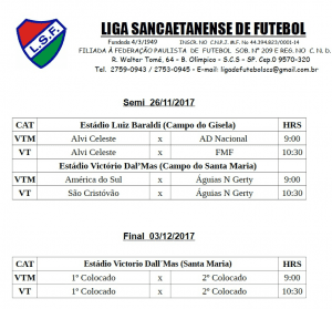 Calendário da várzea do Grande ABC 25-26/11