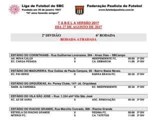 Calendário da várzea do Grande ABC 26-27/8