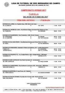 Neste domingo, 8 de outubro, a partir das 9h, acontecerá a terceira rodada do Campeonato de Futebol Amador de Ribeirão Pires – Segunda Divisão. Realizado pela Liga de Futebol Amador, com apoio da Prefeitura, os jogos serão realizados nos campos de Ouro Fino, Santa Luzia e Vila Monteiro.
